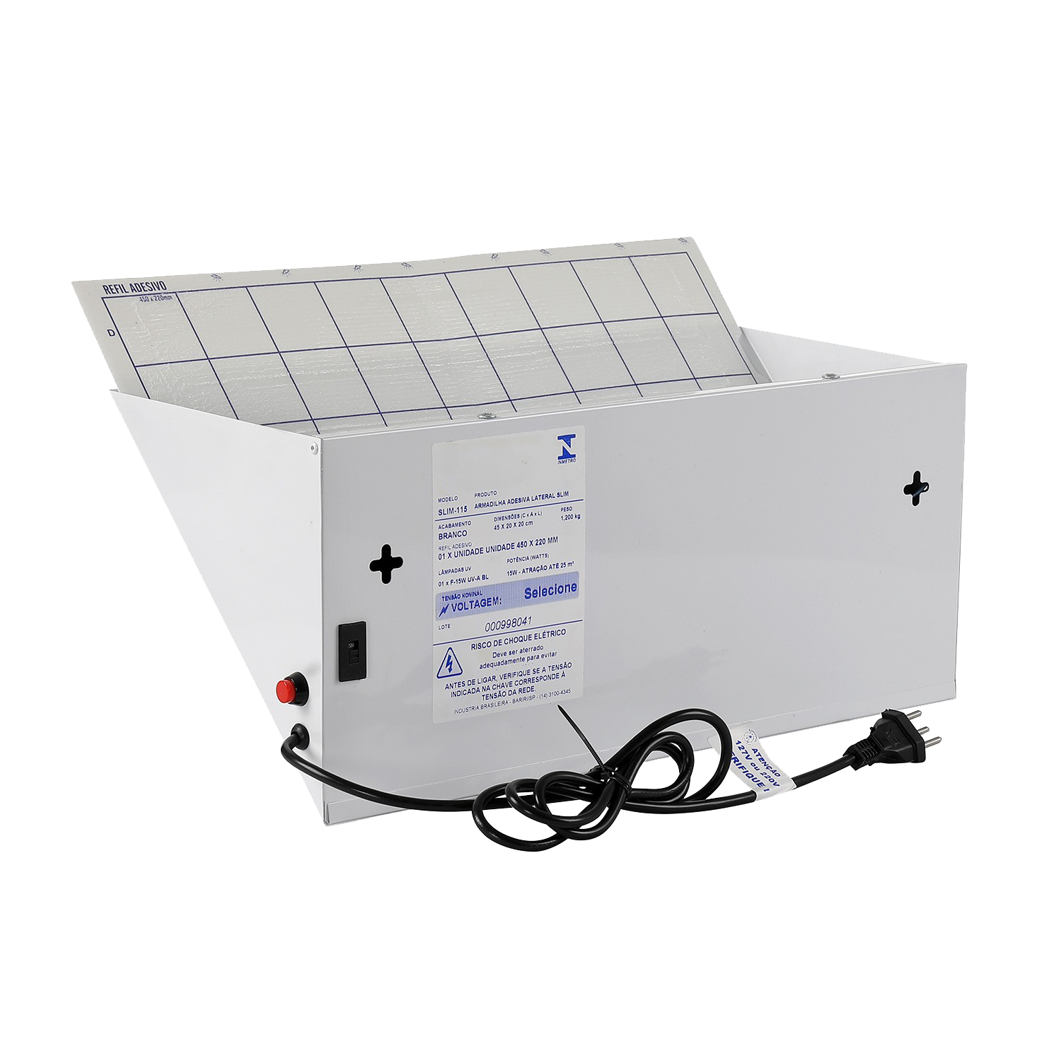 A armadilha SLIM-115 é equipada com 01 lâmpada UV-A especial que atraem insetos voadores. Estes são capturados em uma placa adesiva que deve ser substituídas quando tiver com 70% da superfície por insetos, o que normalmente ocorre ate 30 dias de uso.